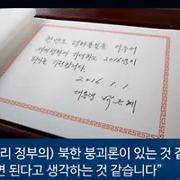 ◆ 정동영> 그 이유, 그 배후는 두 가지라고 생각합니다. 하나는 (우리 정부에서) 북한 붕괴론이 있는 것 같습니다. 밀어붙이면 된다고 생각하는 것 같습니다. 이것은 과도하고 논리적으로 이해하기 어려운 생각인데요. 박근혜 대통령이 올해 1월 1일 국립 현충원을 방문해서 방명록에 이렇게 썼습니다.
