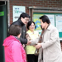 ◆ 정동영> 지난 4년 이명박 정부는 수준 미달 정부입니다. 민주주의에 대한 억압, 인권탄압. 강남 주민들의 자존심을 상하게 한 정부입니다. 그러라고 찍어준 정부는 아니거든요. 선거는 심판입니다. 이 정부를 정확하게 심판할 수 있는 인물, 후보는 누구일까요? 심판의 적임자라고 생각합니다. 이 정부에 대해서 상처 받고 자존심 상하셨다면 그 대답은 정동영이다. 이런 생각이고요.