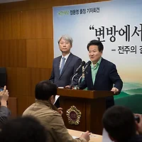 이제 천만명이 전주에 오고, 새만금에 얼마 전까지 오백만명이 오고, 익산․고창․남원 이런데 오는 사람까지 하면 천 수백만명이 전라북도에 옵니다. 오는 시대가 됐습니다. 머리를 쓰고 손발을 쓰고 해서 전라북도를 옛날의 오천년 전에, 삼천년 전에, 천년 전에, 불과 오십년 전까지만 해도 대한민국에서 제일 잘 살던 동네에요. 다시 전라북도 르네상스를 만들어내는 그런 역할이 우리 어깨 위에 있다고 생각합니다. 이건 거대한 일인데 큰 일 중에 바늘 같은 정책을 오늘 몇 개 발표하고자 합니다.
